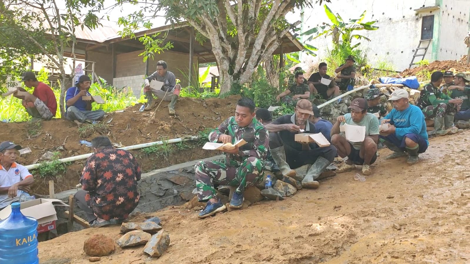 Dengan semangat gotong royong yang telah dibangun, anggota Satgas merasa optimis mampu menyelesaikan seluruh sasaran pembangunan sesuai dengan waktu yang ditentukan, sehingga hasilnya bisa segera dinikmati oleh masyarakat. Kegiatan makan siang ini bukan hanya sekadar santapan, tetapi juga simbol perkuatan sinergi antara TNI dan rakyat dalam mewujudkan pembangunan yang bermanfaat.