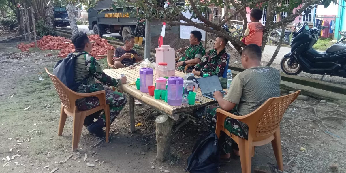 Di Desa Lubuk Tampang, Kecamatan Kikim Timur, tampak beberapa prajurit dari berbagai kalangan, termasuk Sersan dan Staf Teritorial, menggunakan waktu istirahat mereka untuk menyesap kopi hangat. Keseriusan mereka dalam beristirahat terkadang dihiasi oleh tawa, namun tetap pada jalur produktivitas yang diharapkan.