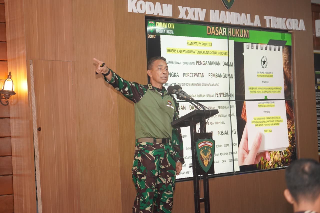 Dalam arahannya, Pangdam XXIV/Mandala Trikora Mayjen TNI Lucky Avianto, S.I.P., M.Si menegaskan bahwa posisi Kodam XXIV/MT memiliki nilai strategis karena berada di wilayah paling timur dan selatan Indonesia serta berbatasan langsung dengan Papua Nugini (PNG).