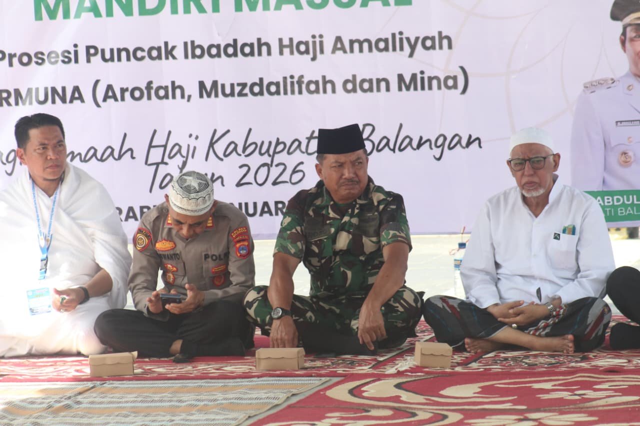BALANGAN – Dandim 1001/HSU-Balangan Letkol Inf Endra Retno Erowanto, S.Sos., M.I.P., diwakili oleh Perwira Penghubung Mayor Inf Suroto, menghadiri kegiatan Pembekalan dan Praktik Manasik Haji Mandiri Massal yang bertempat di Kompleks Perkantoran Halaman Expo Tugu Durian Maritam dan Gedung Badminton, Jalan A. Yani Km 4,5, Kelurahan Batupiring, Kecamatan Paringin Selatan, Kabupaten Balangan, Rabu (14/01/2026).