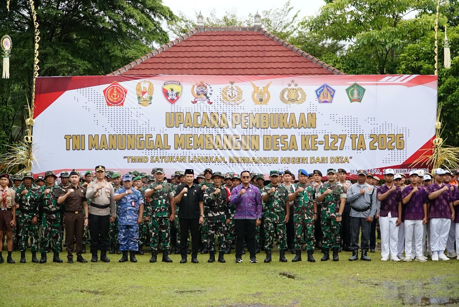 Jembrana – Semangat kebersamaan dan gotong royong kembali bergelora di Bumi Makepung. Kodim 1617/Jembrana mengumumkan pelaksanaan resmi program TNI Manunggal Membangun Desa (TMMD) ke-127 untuk Tahun Anggaran 2026. Upacara pembukaan yang penuh khidmat ini dilangsungkan di Lapangan SMAN 2 Mendoyo, Desa Penyaringan, dan dipimpin langsung oleh Bupati Jembrana, I Made Kembang Hartawan, S.E., M.M.