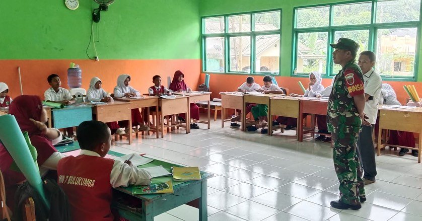 BULUKUMBA – Dalam rangka memperkuat nilai-nilai kebangsaan di kalangan generasi muda, Babinsa Kelurahan Benjala, Serka Basran, melaksanakan kegiatan pengajaran tentang Wawasan Kebangsaan (Wasbang) dan Cinta Tanah Air kepada siswa-siswi di MIS 7 Benjala, yang terletak di Lingkungan Batu Mesu, Kelurahan Benjala, Kecamatan Bonto Bahari, Kabupaten Bulukumba pada Kamis (05/02/2026).