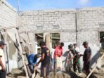 Babinsa Koramil 04/Meureubo Berjibaku Mengaduk Adonan Pasir Dan Semen Percepat Pembangunan Rumah Warga Binaan