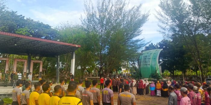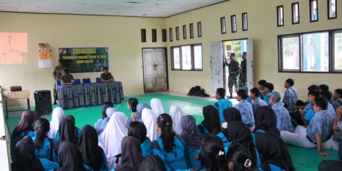 ACEH BARAT – Babinsa Koramil 08 Arongan Lambalek Kodim 0105/Aceh Barat, Serka Heri Jaya, melaksanakan kegiatan pembinaan dan pelatihan Peraturan Baris Berbaris (PBB) di sekolah SMPN 2 Arla di Desa