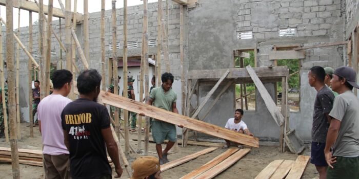 ACEH BARAT – Dengan mewujudkan semangat bergotong royong Babinsa Posramil 05/PC Koptu M Nazir Bantu warga desa binaan dalam pembangunan jalan rambat beton di lorong Desa Lango kecamatan Pante Ceureumen