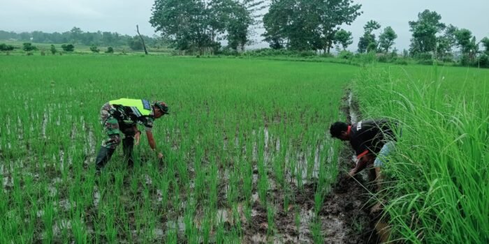 ACEH BARAT – Babinsa Koramil 02/Woyla Kodim 01015/Abar Sertu Suryanto Antoni terlihat sedang membantu warga melakukan penyemaian bibit cabai rawit milik Bapak Muhammad Dahlan dalam polybag, di Desa Kuala Bhee