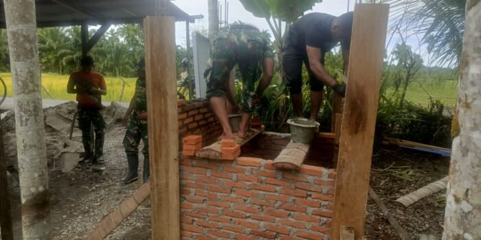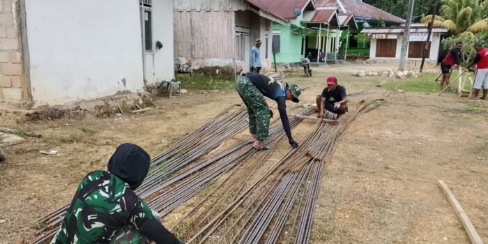 ACEH BARAT – Dengan mewujudkan semangat bergotong royong Babinsa Posramil 05/PC Koptu M Nazir Bantu warga desa binaan dalam pembangunan jalan rambat beton di lorong Desa Lango kecamatan Pante Ceureumen