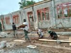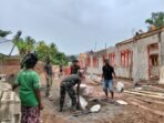 Babinsa Koramil 04/Meureubo Berjibaku Mengaduk Adonan Pasir Dan Semen Percepat Pembangunan Rumah Warga Binaan