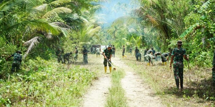 Minahasa, -Bintara Pembina Desa ( Babinsa ) Komando Rayon Militer ( Koramil ) 1302-03/Kakas Kopral Satu ( Koptu ) Gufron memimpin kegiatan Karya bakti di Desa Mahembang, Kecamatan Kakas, Kabupaten