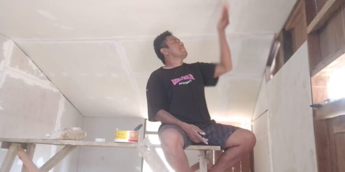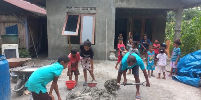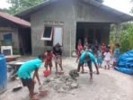 Aceh Jaya – Sebagai bentuk kebersamaan dan untuk mempererat kerja sama dengan warga Babinsa Koramil 04/Krueng Sabee Kodim 0114/Aceh Jaya Kopda Junni bergotong royong dengan warga dalam pembangunan salah satu