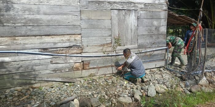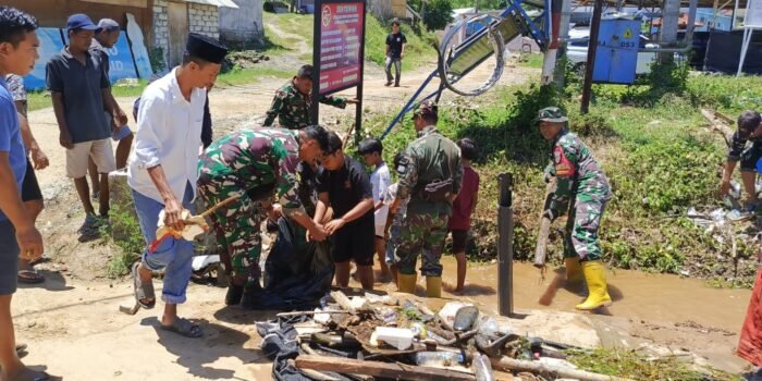 Aceh Jaya – Berat sama dipikul ringan sama dijinjing begitulah kekompakan Koptu Dedi Januari Babinsa Koramil 01/Jaya dengan warga saat bergotong royong menyambut Maulid Nabi Muhammad SAW 1446 H/2024 di