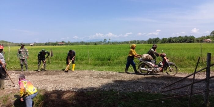 ACEH BARAT – Wujud kebersamaan dan berperan aktif mengatasi kesulitan rakyat di wilayah binaan dituangkan oleh babinsa Posramil 06/Bubon,Kodim 0105/Aceh Barat serda Endi dengan melibatkan diri secara langsung dalam pelaksanaan