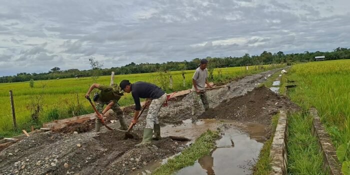 ACEH BARAT – Sebagai upaya mengatasi kesulitan sekaligus mewujudkan tempat tinggal yang layak huni, Babinsa Koramil 04/Mrb Kodim 0105/Abar Serda Edi Hermanto berperan aktif melibatkan diri secara langsung dan turut
