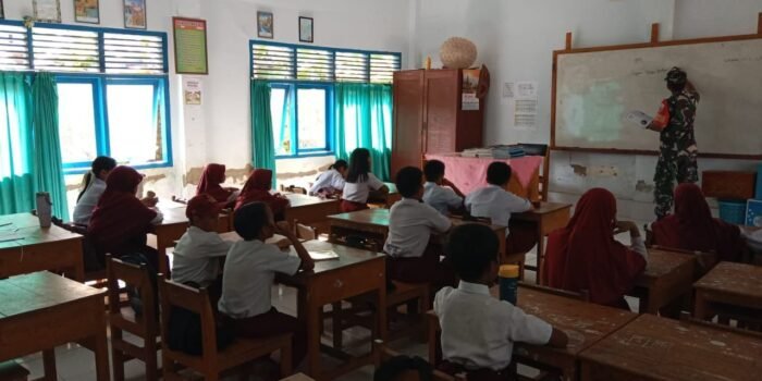 LANNY JAYA – Personel Satgas Pamtas RI – PNG Kewilayahann Yonif 614/Raja Pandhita Pos Balingga membantu meningkatkan ilmu pengetahuan kepada murid Sekolah Dasar Impres Brume Balingga. Seperti yang dilakukan oleh