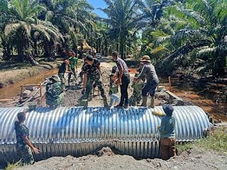 HULU SUNGAI UTARA – Babinsa Koramil 1001-06/Amuntai jajaran Kodim 1001/HSU-BLG melaksanakan gotong royong bersama warga memperbaiki jalan yang rusak di desa Palimbangan Sari, Kecamatan Haur Gading, Senin, (04/11). Serka M.