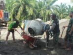 ACEH BARAT – Babinsa Koramil 08 Arongan Lambalek Kodim 0105/Aceh Barat, Koptu Riansyah, bersama masyarakat desa binaan merehab masjid di Desa Drien Rampak Kecamatan Arongan Lambalek Kab Aceh Barat, Senin