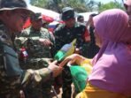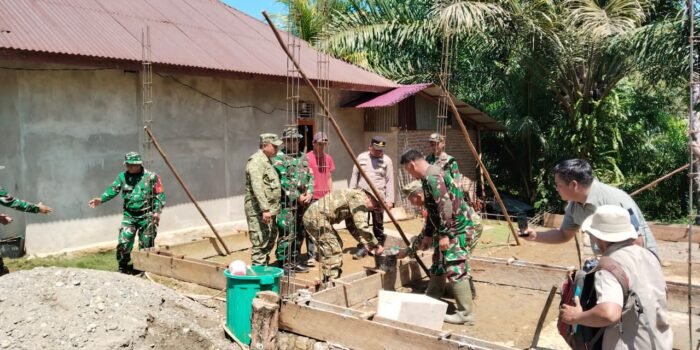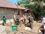 ACEH BARAT – Babinsa Koramil 10/Woyla Barat akofim 0105/Aceh Barat, Serda Ari Mulyadi bersama masyarakat melakukan gotong royong dalam pembanguan Masjid Darul Salami yang terletak di Desa Alue Perman Kecamatan