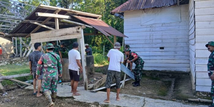 ACEH BARAT – Babinsa Koramil 08/Arongan Lambalek, Kodim 0105/Aceh Barat, Koptu Adi Diarto bersama Bhabinkamtibmas Polsek Arongan Lambalek, Bripka M. Hamid, melaksanakan kegiatan komunikasi sosial (komsos) dengan warga desa binaan