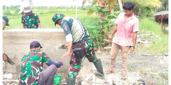 ACEH BARAT – Wujud kebersamaan dan berperan aktif mengatasi kesulitan rakyat di wilayah binaan dituangkan oleh babinsa Posramil 06/Bubon,Kodim 0105/Aceh Barat serda Endi dengan melibatkan diri secara langsung dalam pelaksanaan