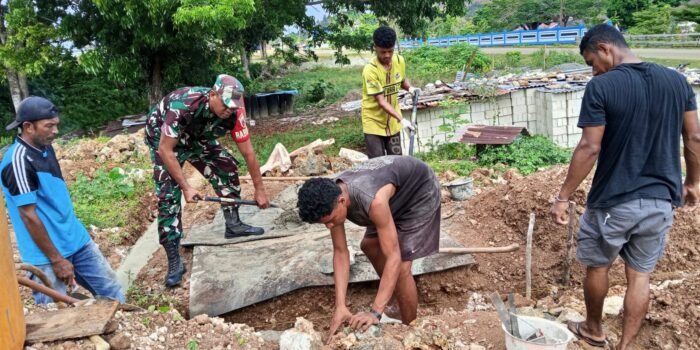ACEH BARAT – Sebagai upaya mengatasi kesulitan sekaligus mewujudkan tempat tinggal yang layak huni, Babinsa Koramil 04/Mrb Kodim 0105/Abar Serda Edi Hermanto berperan aktif melibatkan diri secara langsung dan turut