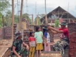 LANNY JAYA – Satgas Yonif 614/Raja Pandhita Pos Popome menyambangi salah satu warga yang sedang berduka. Personel Pos Popome melayat ke rumah duka Almarhum Bapak Yolek Murib (53) merupakan warga