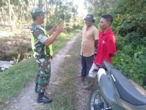 ACEH BARAT – Dalam melaksanakan tugas pokok Kemanunggalan TNI bersama Rakyat, Babinsa Koramil 10/Woyla Barat Kodim 0105/Aceh Barat. Serda Hendri Sahputra melaksanakan Komunikasi Sosial (Komsos)di perkebun masyarakat bersama masyarakat atau