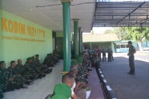 TTS _ Komandan Kodim 1621 TTS Letkol Inf Sobirin S. Ag., M. Si memberikan jam Komandan kepada seluruh anggota baik prajurit maupun PNS selepas pelaksanaan upacara Bendera Hari Senin Di