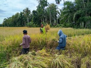ACEH BARAT – Babinsa Koramil 09 Samatiga, Kopda Hendrawan, melaksanakan kegiatan pendampingan terhadap Kelompok Tani (Pok Tani) dalam panen padi di Desa Suak Seuke, Kecamatan Samatiga. Kegiatan ini merupakan bagian