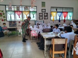 Babinsa Berikan Materi Wasbang “Tanamkan Rasa Cinta Tanah Air Kepada Murid SD”