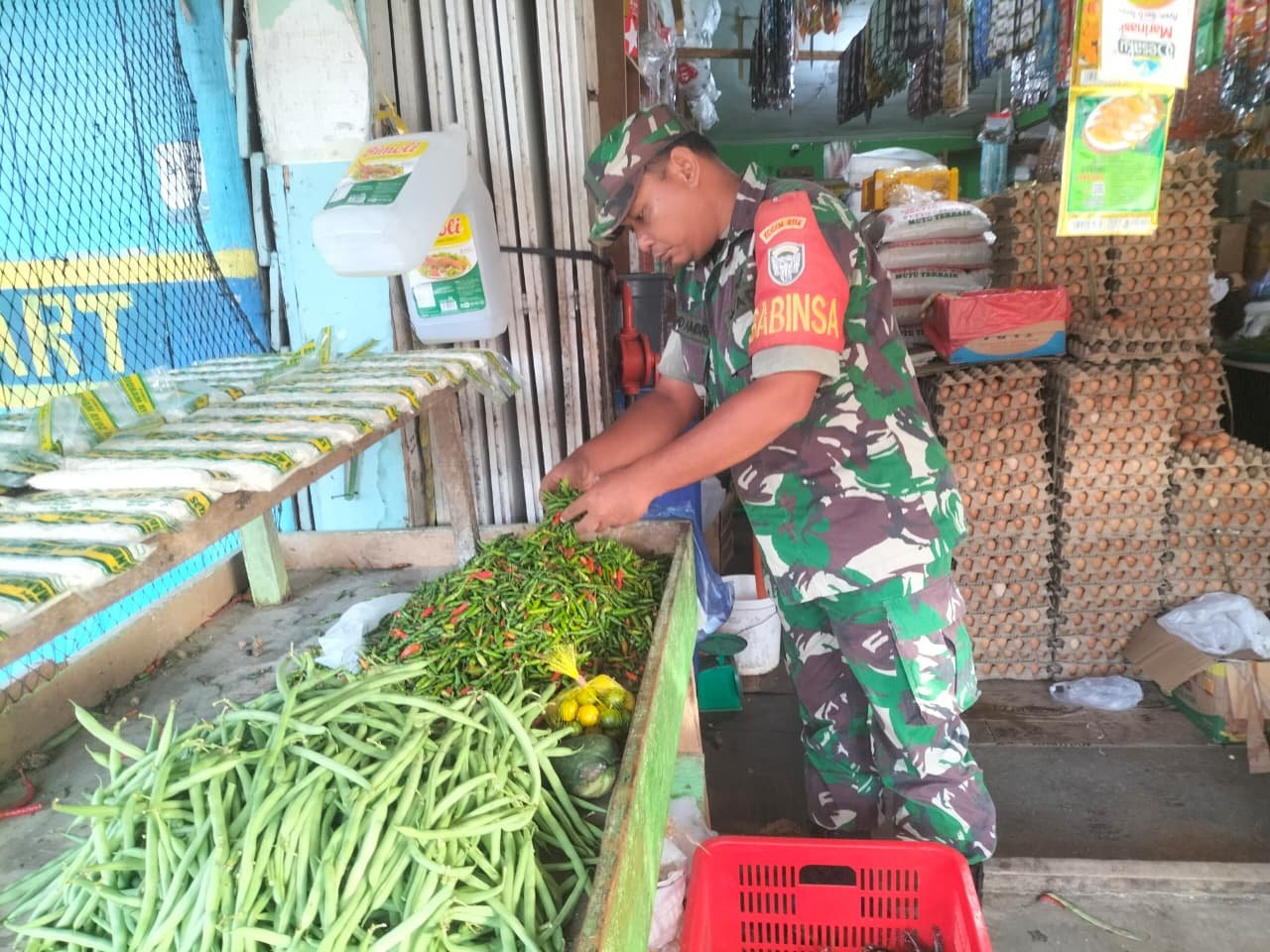 Selain melakukan pengecekan harga, Babinsa juga berdialog dengan para pedagang mengenai kondisi penjualan serta pasokan barang yang tersedia di pasar.