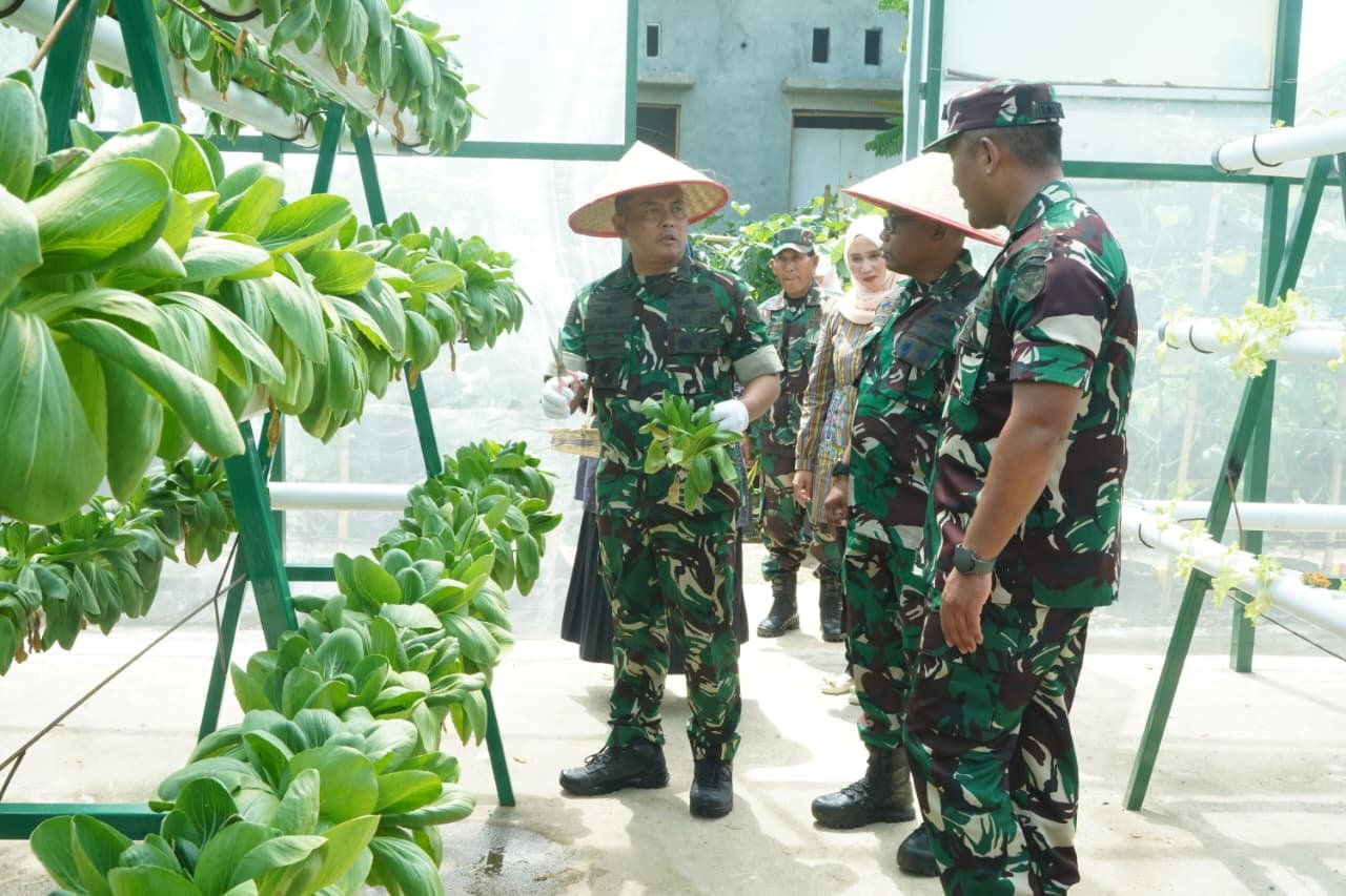 Dalam peninjauan tersebut, Kasdam bersama Danrem melihat langsung berbagai komoditas unggulan yang dikembangkan di lokasi tersebut. Di antaranya budidaya sayuran hidroponik, tanaman melon dan semangka, serta aneka tanaman obat keluarga (TOGA) dan pembibitan pohon keras.
