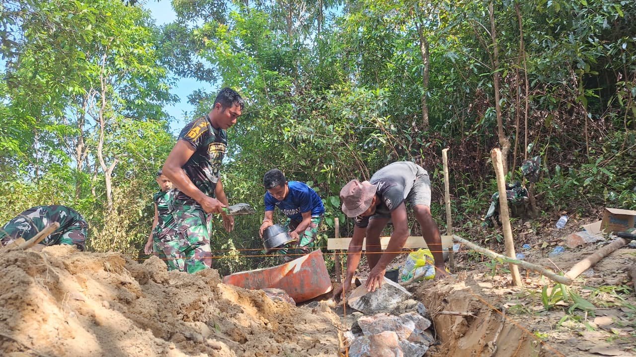 Meskipun lokasi proyek menghadapi medan yang menantang, semangat anggota Satgas TMMD dan masyarakat lokal tetap tak tergoyahkan. Mereka bahu-membahu dengan penuh semangat mengangkut material bangunan menuju lokasi proyek pembangunan.