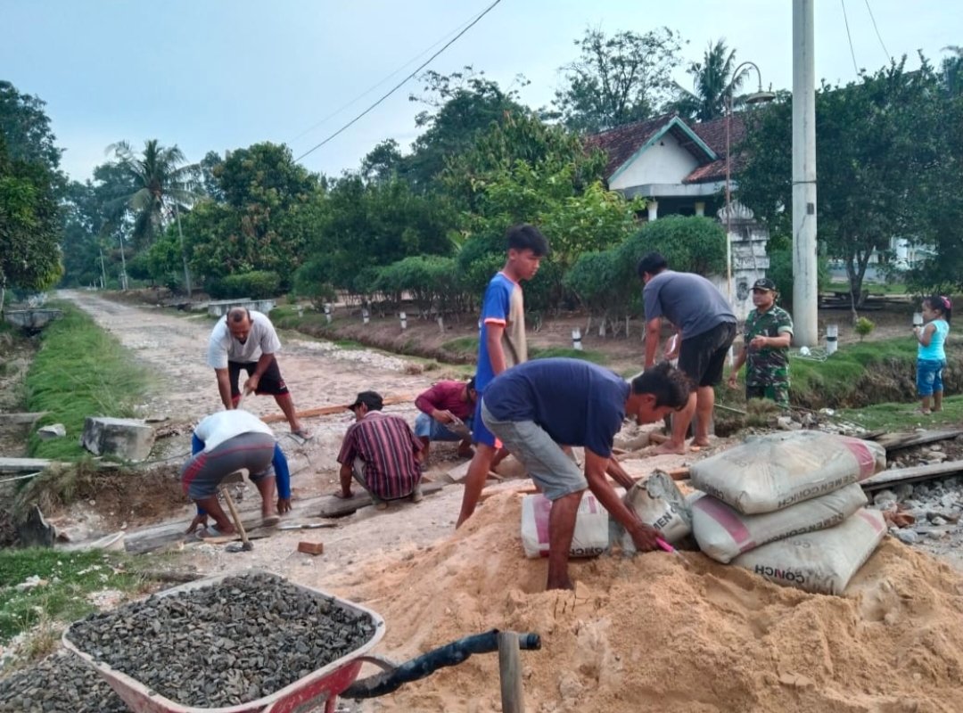 Dalam upaya memperkuat kemanunggalan antara TNI dan masyarakat, Babinsa 426-04 BA dari Kodim 0426 Tulang Bawang, Serma Susilo, berpartisipasi aktif dalam kegiatan gotong royong yang berlangsung di Kampung Mekar Sari, Kecamatan Gedung Aji. Kegiatan ini dilaksanakan pada Selasa, 14 April 2026, dan menjadi salah satu wujud nyata keterlibatan militer dalam pembangunan infrastruktur desa.