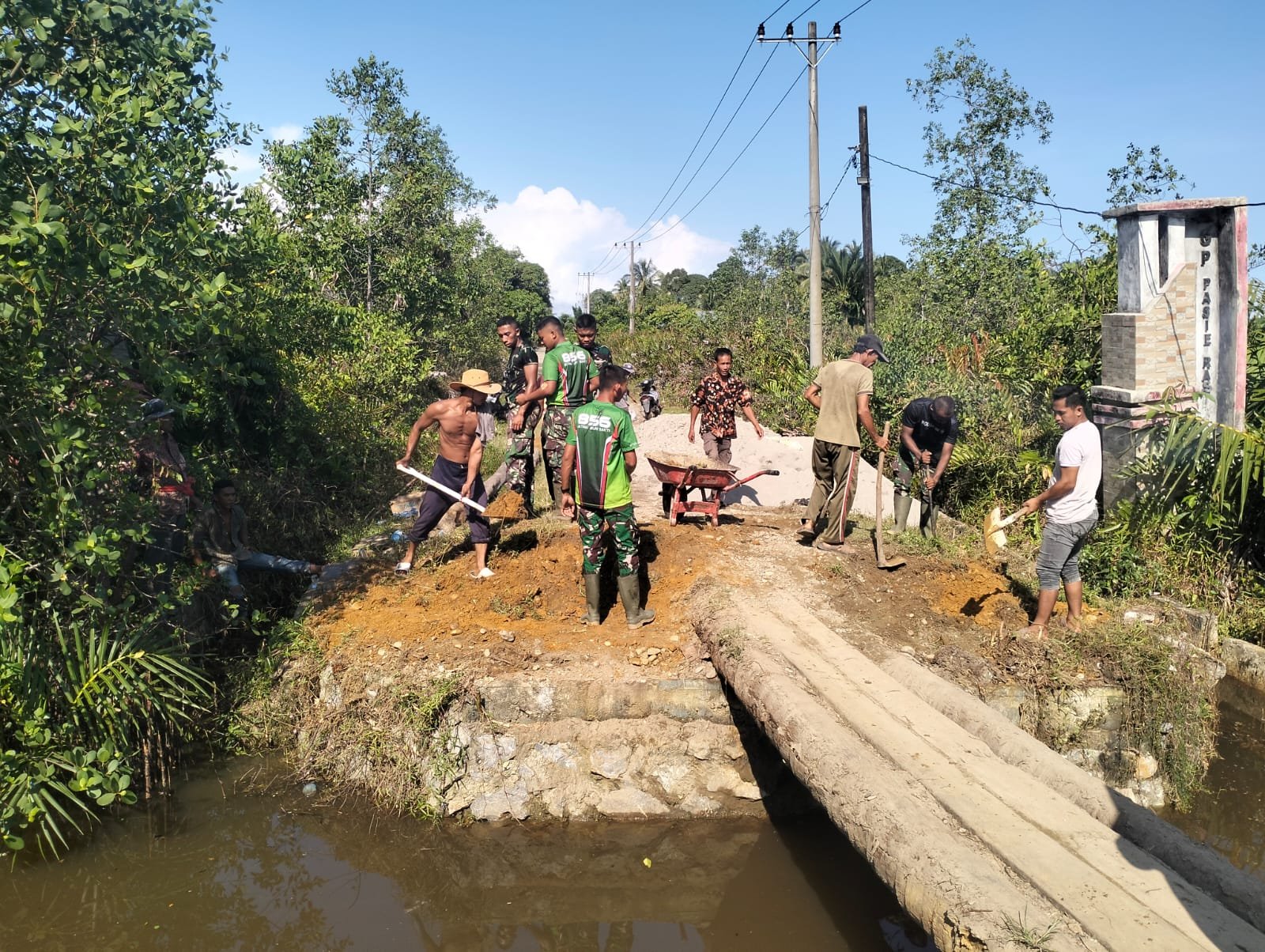 Ungkapan tersebut disampaikan Hamdan di sela-sela kegiatan gotong royong bersama prajurit TNI dalam tahap awal pembangunan jembatan di Desa Pasi Rasian, Kecamatan Pasie Raja, Kabupaten Aceh Selatan, Sabtu (04/4/2026).