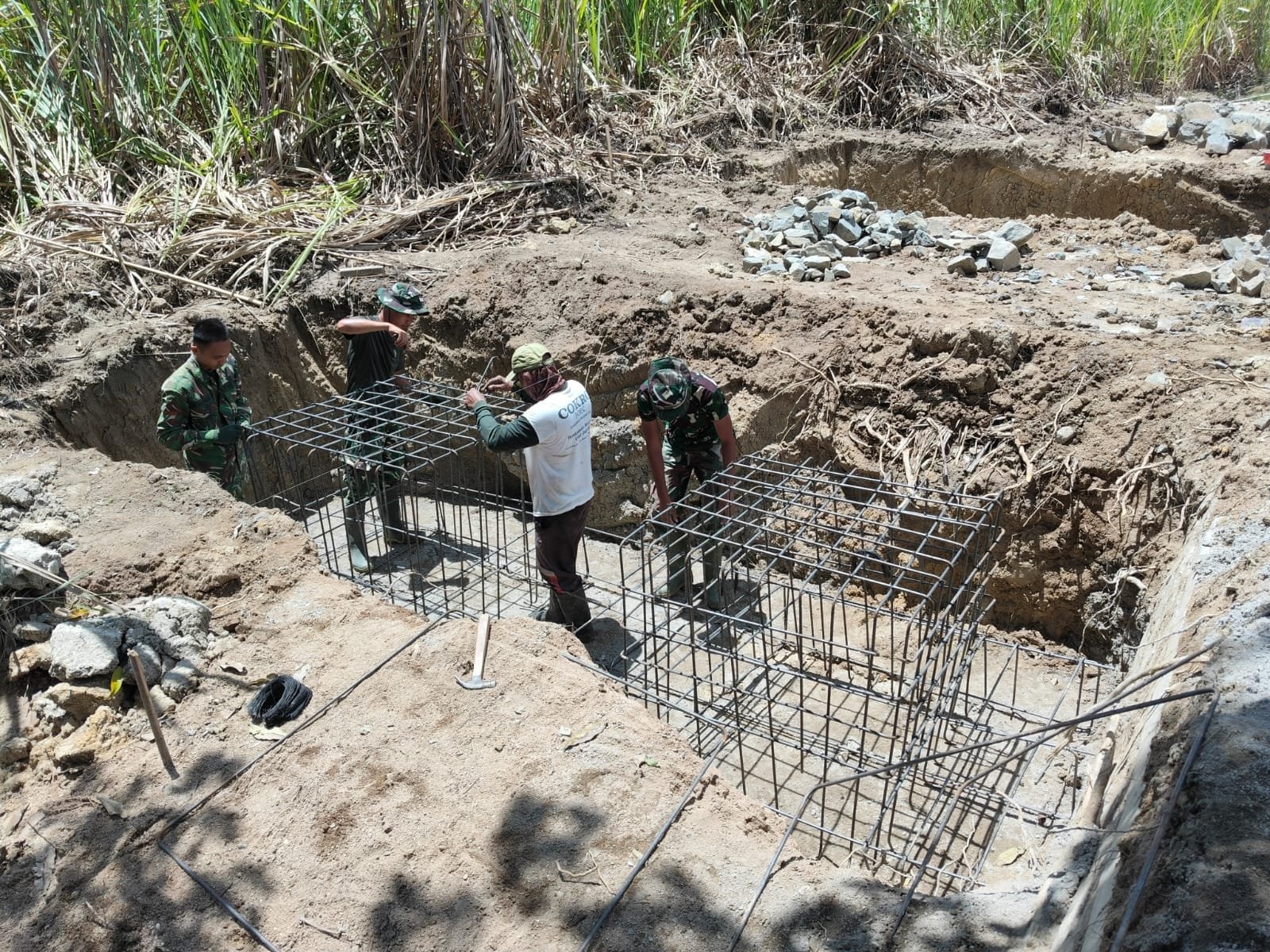Sejak pagi hari, kemanunggalan TNI dan rakyat terpancar nyata di lokasi pembangunan. Fokus pengerjaan kali ini meliputi pemasangan struktur kerangka besi serta pelanjutan pengecoran beton pada bagian-bagian vital jembatan. Meski cuaca cukup menyengat, ritme kerja para personel dan warga tetap berjalan dengan semangat tinggi.