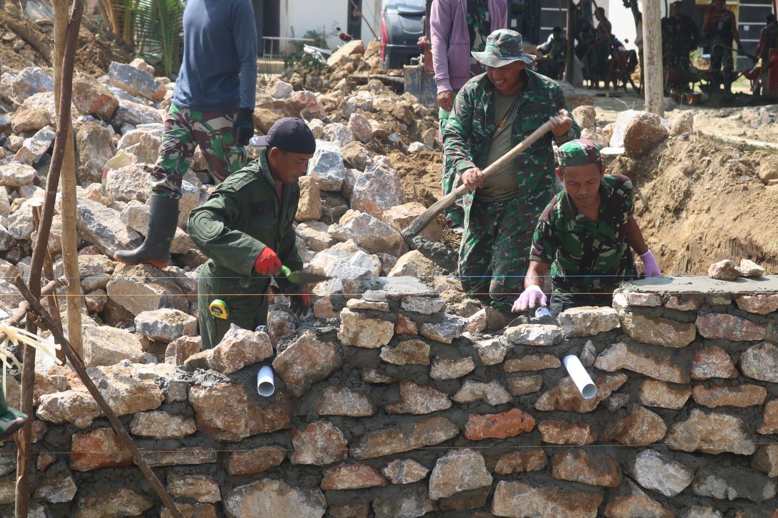 Kendari – Pada hari Minggu, 15 Februari, personel Satgas TMMD ke-127 dari Kodim 1417/Kendari terus melanjutkan pembangunan jembatan di Kelurahan Sambuli. Dalam upaya menyelesaikan proyek ini, pengerjaan jembatan dipercepat menjelang pertengahan bulan Februari. Meskipun kegiatan berlangsung pada hari libur, para prajurit bersama warga setempat saling bekerja sama dalam menyelesaikan proses konstruksi yang menjadi fokus utama.