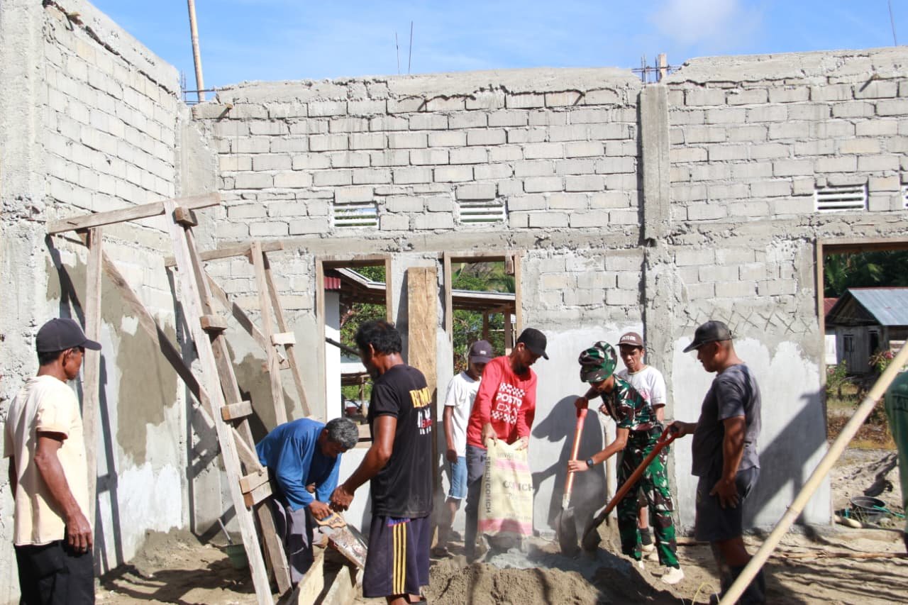 Dalam proses pengerjaan, anggota Satgas TMMD bekerja sama dengan masyarakat setempat dalam semangat gotong royong. Mereka terlibat dalam berbagai tahap pembangunan, mulai dari persiapan material, pemasangan struktur bangunan, hingga tahap konstruksi, menegaskan adanya sinergi antara TNI dan rakyat.