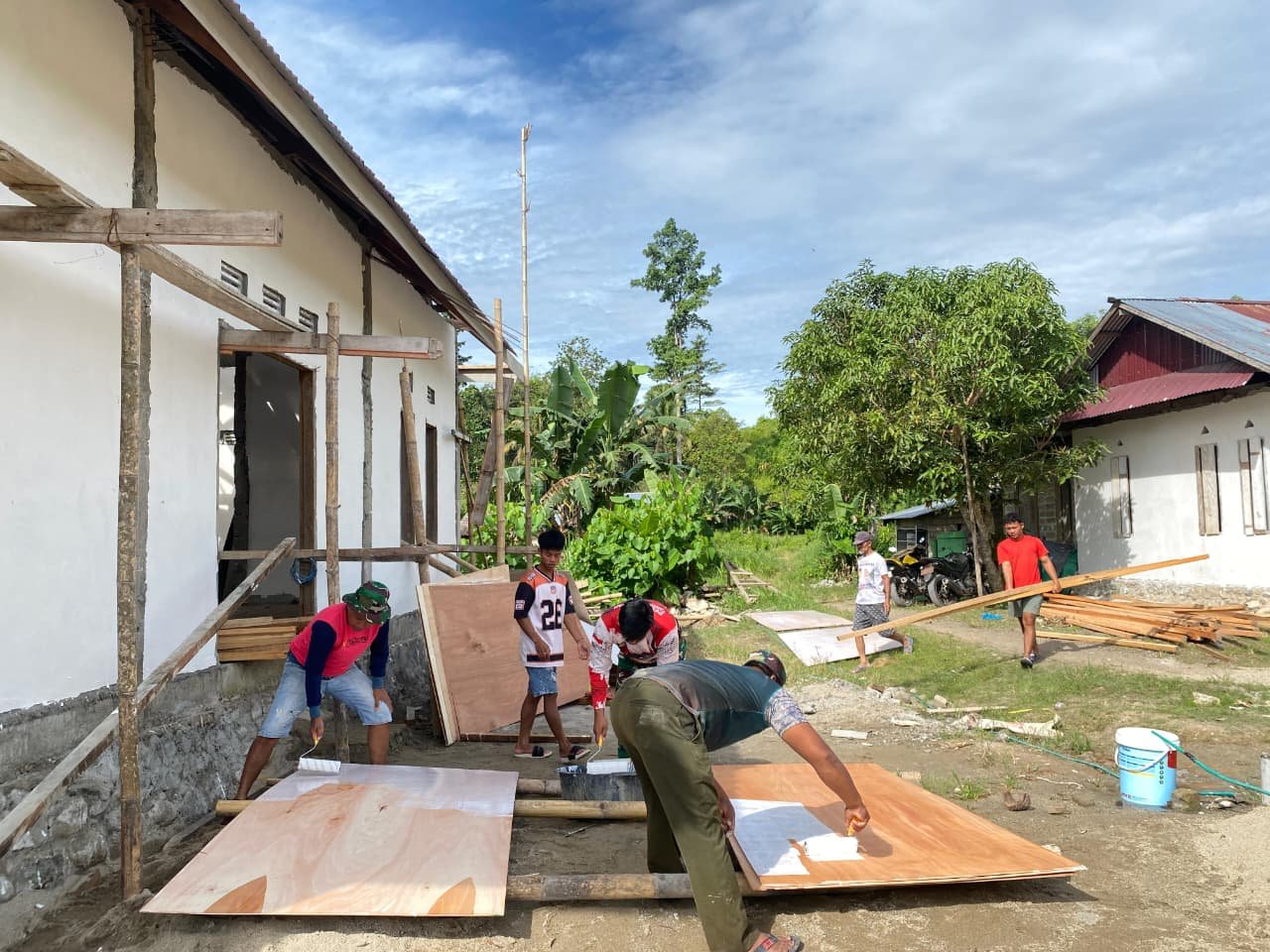 Kegiatan ini dilakukan dalam semangat gotong royong untuk mempercepat penyelesaian proyek pembangunan. Keharmonisan antara prajurit dan warga terlihat jelas selama proses berlangsung, yang menunjukkan kemanunggalan TNI dengan masyarakat di kawasan pedesaan.