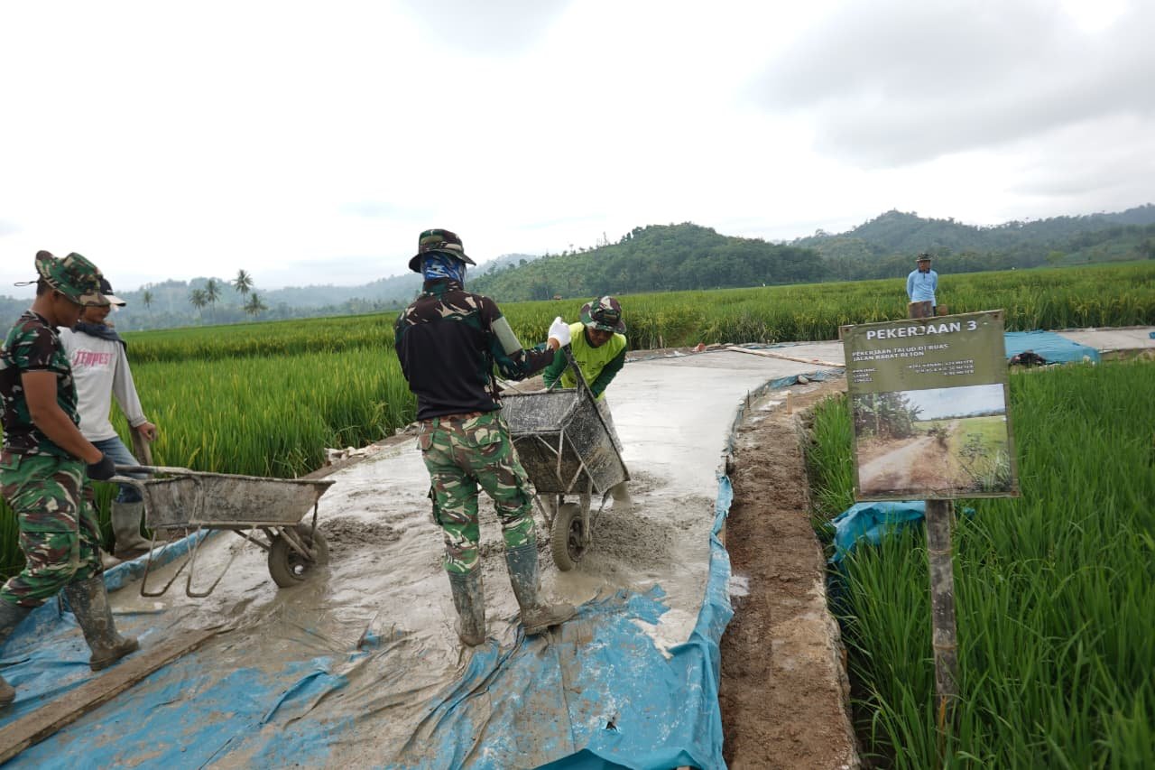Pesawaran — Program pembangunan rabat beton menjadi salah satu fokus utama dalam pelaksanaan kegiatan TNI Manunggal Membangun Desa (TMMD) ke-127 yang diadakan oleh Kodim 0421/Lampung Selatan di Desa Tanjung Rejo. Tujuan dari pengerjaan ini adalah untuk meningkatkan mutu akses jalan desa, sehingga menjadi lebih kokoh, aman, dan nyaman bagi masyarakat yang melintasinya.