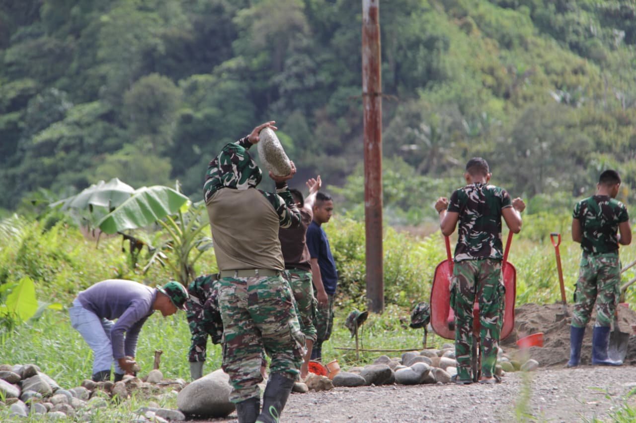 Dalam proses pembangunan, anggota Satgas TMMD berkolaborasi dengan masyarakat setempat untuk menyusun batu, mendirikan pondasi, dan melakukan pengecoran, sehingga talud yang dibangun dapat memiliki ketahanan dan kekokohan yang optimal.