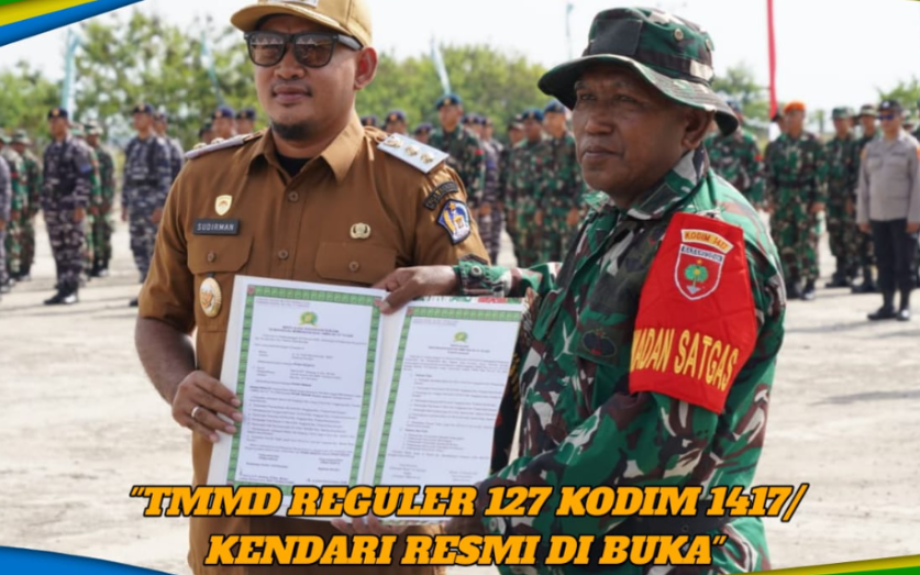 Kendari – Program TNI Manunggal Membangun Desa (TMMD) Ke-127 Tahun Anggaran 2026 resmi dibuka di wilayah teritorial Kodim 1417/Kendari. Upacara pembukaan program tersebut dipimpin oleh Wakil Wali Kota Kendari, Sudirman, dan dilaksanakan di Pelabuhan Bungkutoko, Jalan Pelabuhan, Kelurahan Bungkutoko, Kecamatan Abeli, Kota Kendari, pada Selasa, 10 Februari 2026.