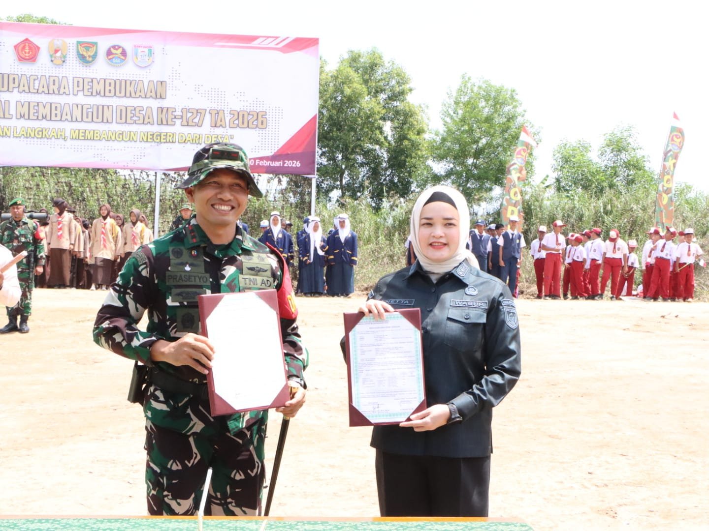 Banyuasin – Upacara resmi pembukaan TNI Manunggal Membangun Desa (TMMD) Ke-127 Tahun Anggaran 2026 Kodim 0430/Banyuasin berlangsung pada Selasa, 10 Februari 2026, pukul 10.30 WIB di Desa Wonosari, Kecamatan Pulau Rimau, Kabupaten Banyuasin, Sumatera Selatan. Acara ini dipimpin oleh Wakil Bupati Banyuasin, Netta Indian, S.P.