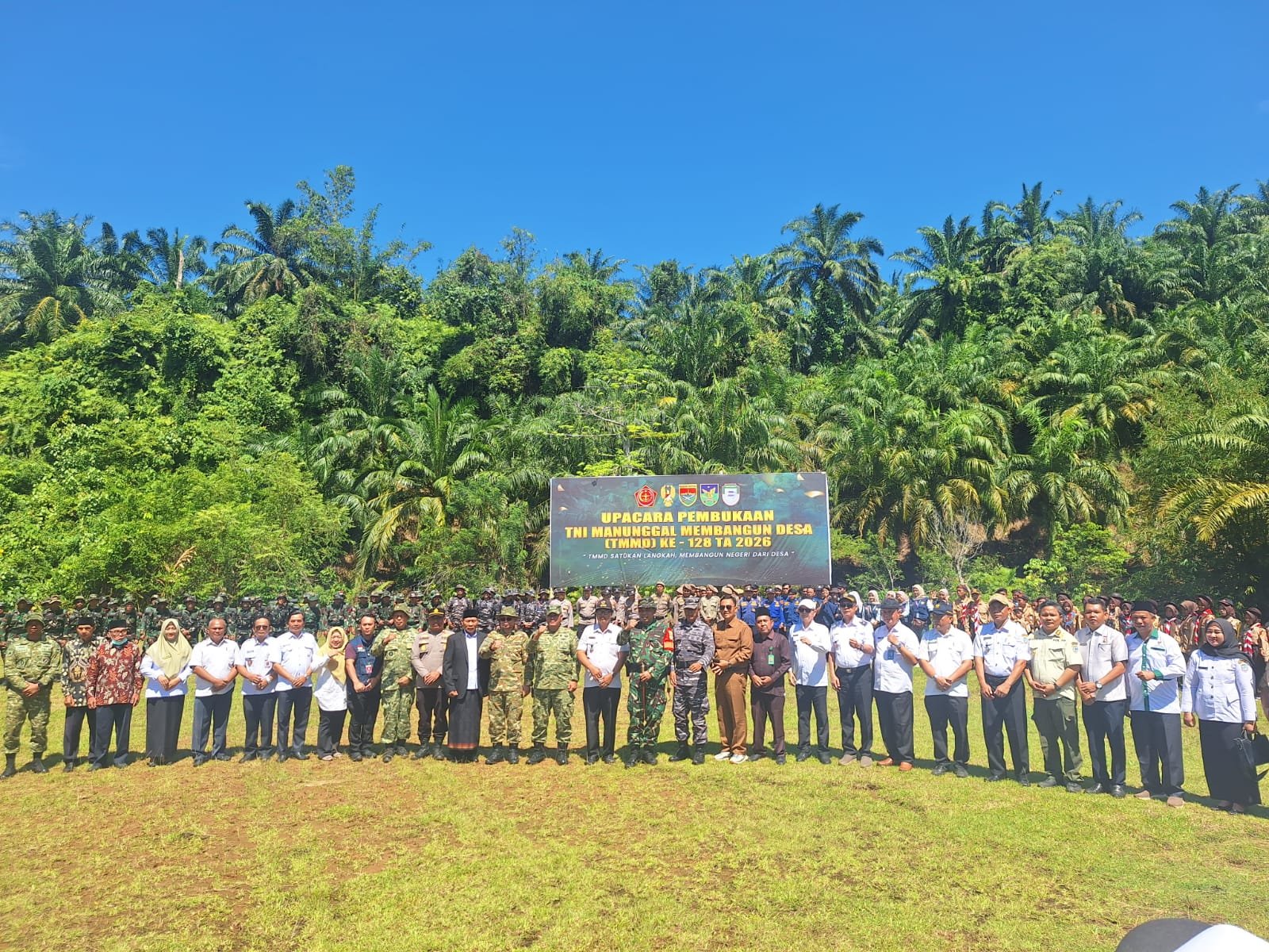 Seluma – Kodim 0425/Seluma secara resmi melaksanakan upacara pembukaan program TNI Manunggal Membangun Desa (TMMD) ke-128 untuk tahun 2026 di lapangan sepak bola Desa Lubuk Lagan, Kecamatan Talo Kecil, Kabupaten Seluma pada Rabu, 22 April 2026. Upacara ini berlangsung dengan penuh khidmat dan dihadiri oleh Bupati Seluma, Teddy Rahman, serta perwakilan Danrem 041/Gamas yang diwakili oleh Kasiter Korem 041/Gamas Kolonel Inf Eko Prasetyo. Selain itu, hadir juga jajaran Satgas TMMD, unsur Forkopimda, pelajar, dan masyarakat setempat.