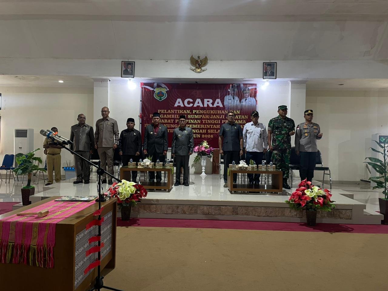 SoE, 23 Februari 2026 – Pada Senin, 23 Februari 2026, Pemerintah Kabupaten Timor Tengah Selatan (TTS) menyelenggarakan pelantikan, pengukuhan, dan pengambilan sumpah jabatan bagi pejabat pimpinan tinggi pratama. Acara berlangsung mulai pukul 15.00 WITA di Aula Mutis, Kantor Bupati TTS, yang terletak di Jalan Piet A. Tallo, SH No.1, Kelurahan Karangsiri, SoE. Sekitar 100 tamu undangan menghadiri acara tersebut, yang dipimpin oleh Bupati TTS, Eduard Markus Lioe, serta dihadiri oleh unsur Forkopimda, termasuk Dandim 1621/TTS, Gunawan Budhi Prasetyo.