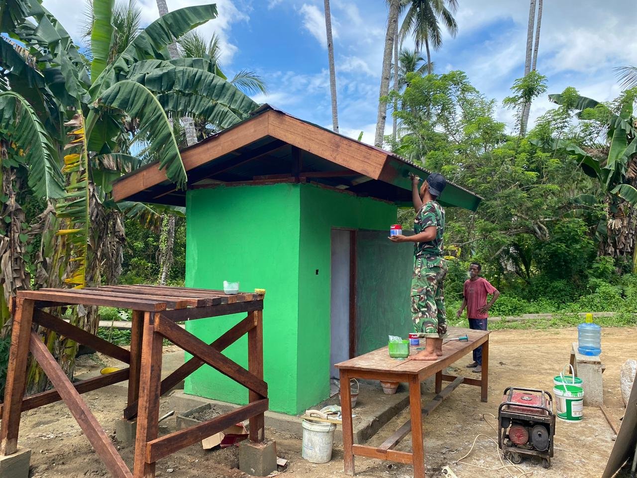 Kaimana – Pada tanggal 1 Maret 2026, kegiatan pengecatan list MCK di samping Gereja Oraid Labora yang terletak di Kampung Sisir, Distrik Kaimana, Kabupaten Kaimana, kembali dilaksanakan dalam rangka program TMMD 127. Kegiatan ini dipimpin oleh Serda Reba, yang menjabat sebagai Babinsa Kampung Sisir. Ia berkomitmen untuk memastikan proses pengecatan berlangsung dengan rapi dan merata, sehingga hasil akhir bangunan dapat terlihat bersih dan awet.