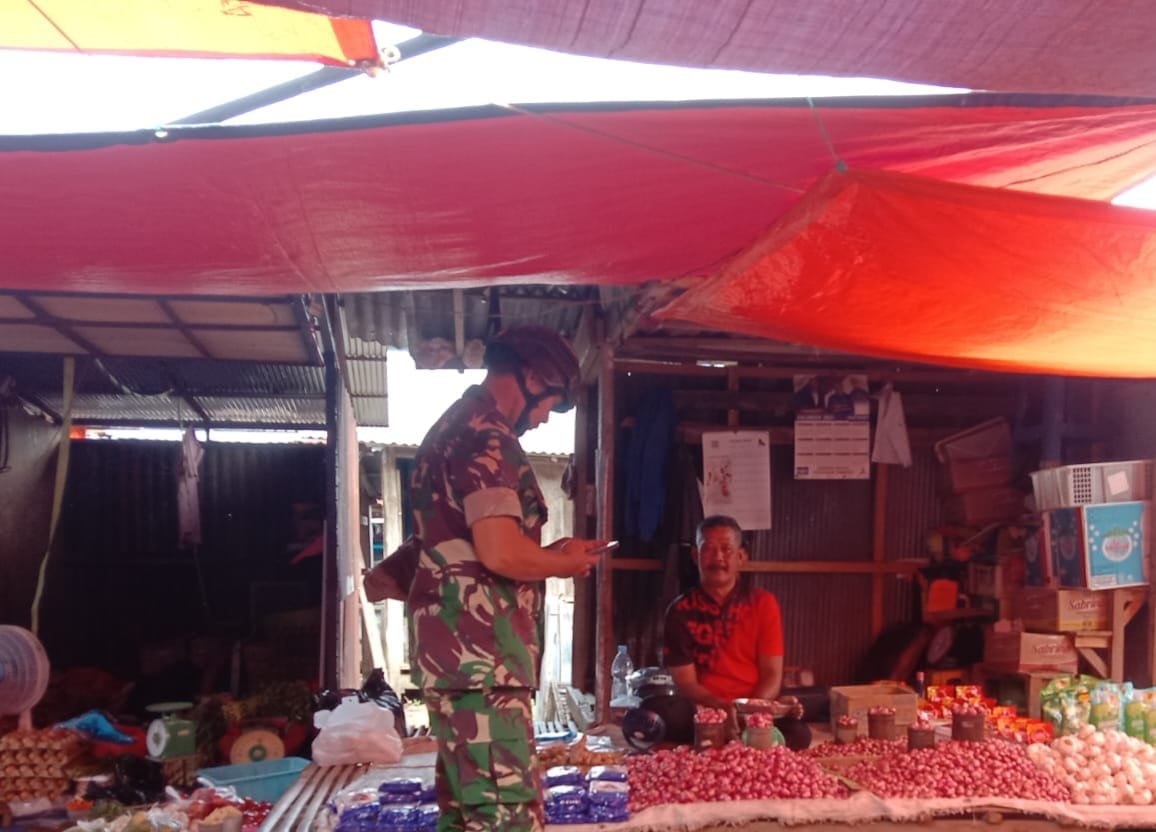 Sidrap – Sertu Isman, anggota dari Koramil 01/Panca Lautang, melaksanakan kegiatan pengecekan harga serta ketersediaan bahan pokok sembako di Pasar Sentral Bilokka yang terletak di Kecamatan Panca Lautang, Kabupaten Sidrap. Kegiatan ini dilakukan pada Rabu, 11 Februari 2025, dengan tujuan untuk memastikan adanya stabilitas harga dan kelancaran distribusi bahan pokok bagi masyarakat di wilayah kerja Koramil.
