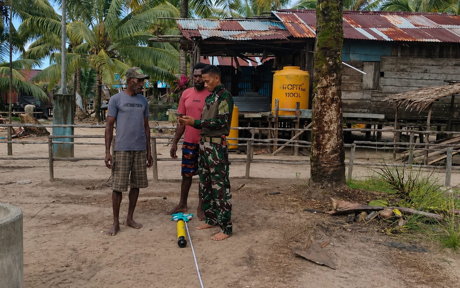 Mimika — Dalam rangka meningkatkan akses air bersih bagi masyarakat, Satgas TMMD ke-128 Kodim 1710/Mimika telah menetapkan lima titik untuk pengeboran sumur di Kampung Keakwa. Lokasi-lokasi yang terpilih tersebut ditentukan dengan cermat agar air bersih yang dihasilkan cukup untuk memenuhi kebutuhan sehari-hari masyarakat.