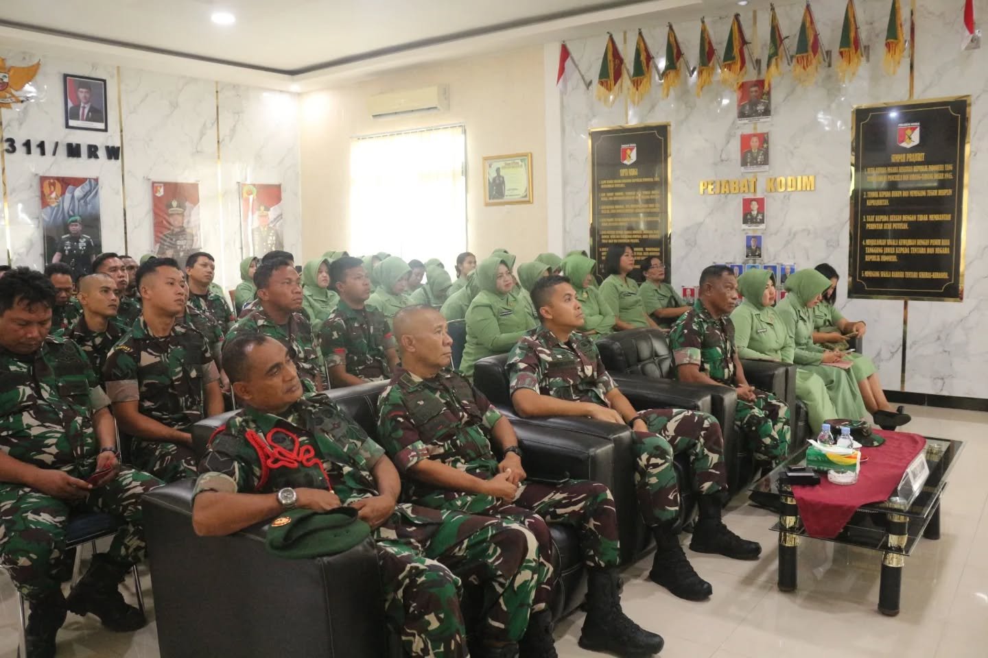 Morowali, Rabu (14/01/2026) – Dalam upaya meningkatkan kesejahteraan prajurit, Kodim 1311/Morowali mengadakan acara Nonton Bareng (Nobar) yang menampilkan Kartika Podcast mengenai Tabungan Wajib Perumahan (TWP). Acara ini dihadiri oleh Komandan Kodim 1311/Morowali, Letkol Inf Abraham S. Pandjaitan, M.S.S., bersama para perwira, prajurit, serta anggota Persit KCK Cabang LXVII Dim 1311/Morowali. Kegiatan berlangsung di Aula Ksatria Kodim, yang terletak di Jalan KTM, Desa Bahomohoni, Kecamatan Bungku Tengah, Kabupaten Morowali.