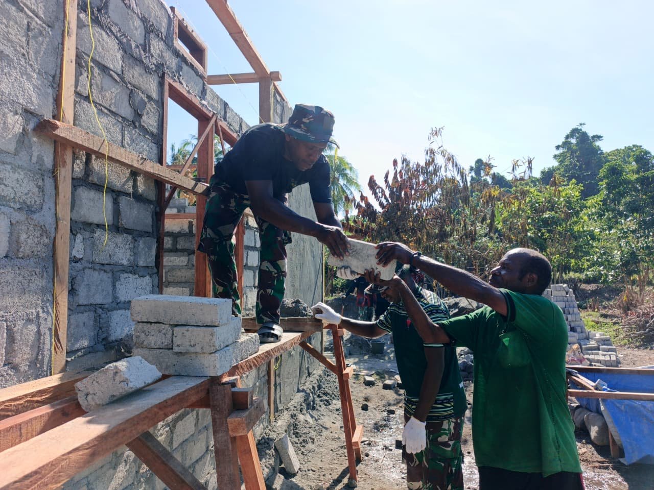 Manokwari Utara — TMMD ke-128 yang diselenggarakan oleh Kodim 1801/Manokwari terus menunjukkan hasil nyata bagi warga, salah satunya adalah pembangunan rumah layak huni bagi masyarakat Kampung Tanah Rubuh.