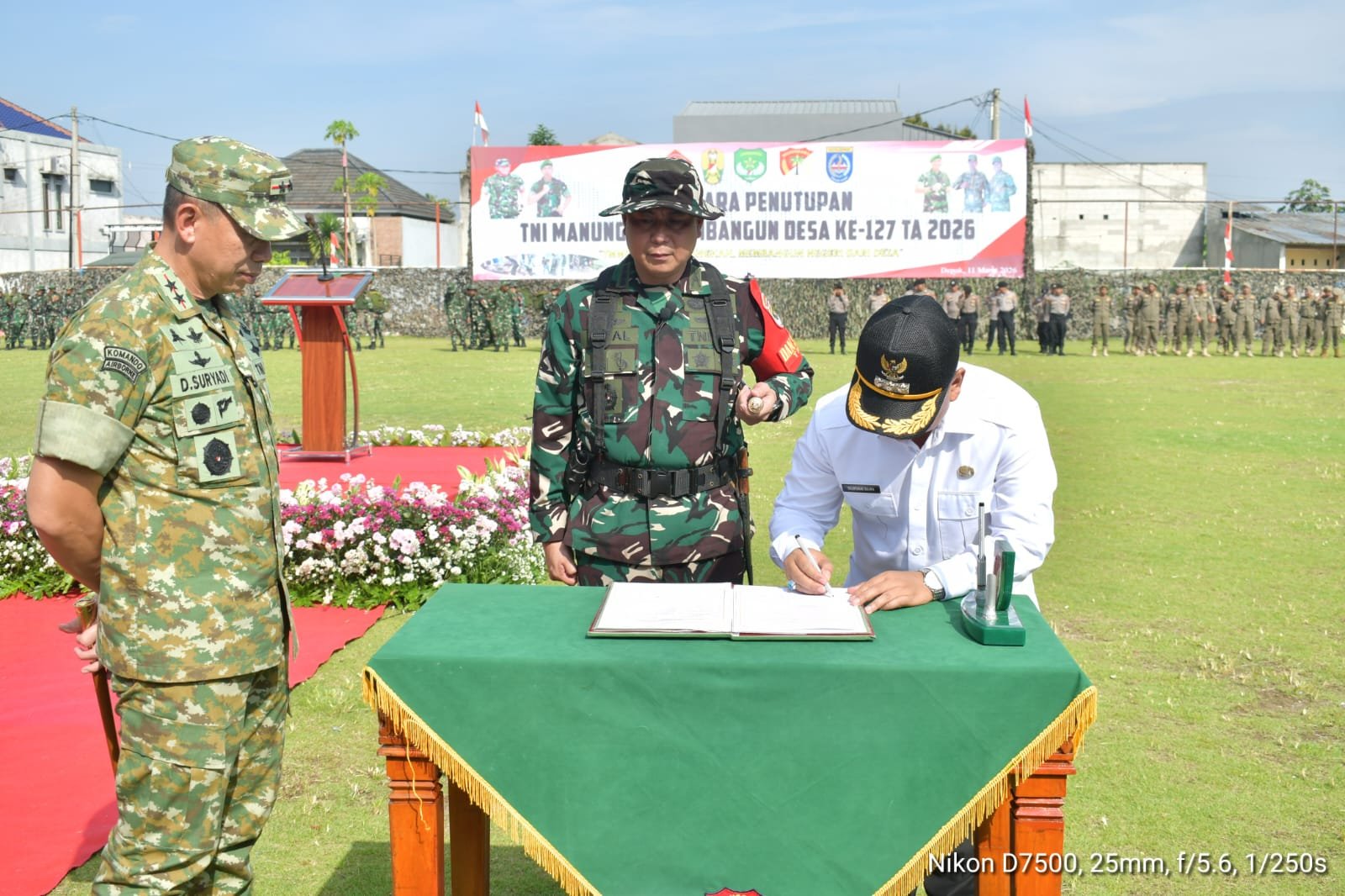 Dengan tema “Dengan Semangat TMMD Satukan Langkah, Membangun Negeri Dari Desa”, program ini mencerminkan kerja sama yang erat antara TNI, pemerintah daerah, dan masyarakat setempat. Penutupan ditandai dengan penandatanganan naskah hasil pelaksanaan TMMD yang dilakukan oleh Pangdam Jaya dan Walikota Depok, Dr. H. Supian Suri.
